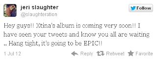 El coreografo y amigo de Christina, Jeri Slaughter, dijo a traves de su cuenta de Twitter que el Album viene muy pronto.